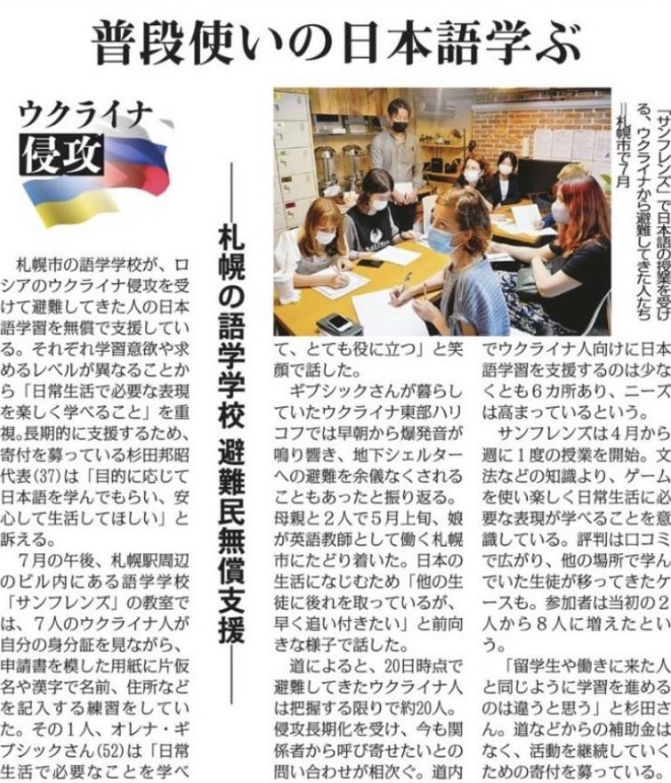 日本語教育と交流活動によって、課題を解決へ導くことを目標に、サンフレンズは2022年3月からウクライナの方々へ支援活動を行っています。